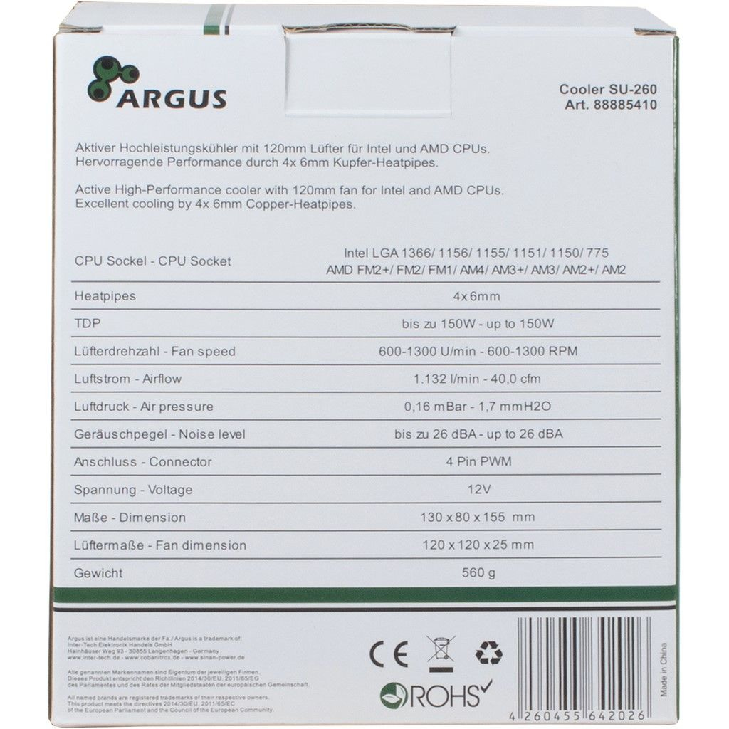 Inter-Tech Kühler ARGUS SU-260 aktiv 120 mm Lüfter
