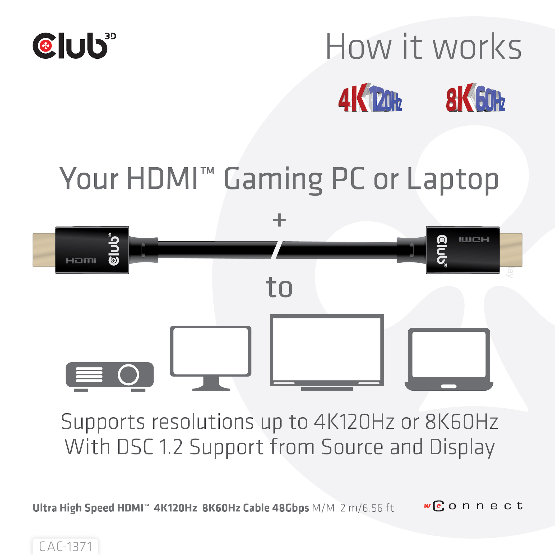 Alle HDMI 2.1 Funktionen werden von diesem Club3D CAC-1371 Kabel voll unterstützt. Es ist Die ideale Lösung für das ultimative, zukunftssichere HDMI -Erlebnis.