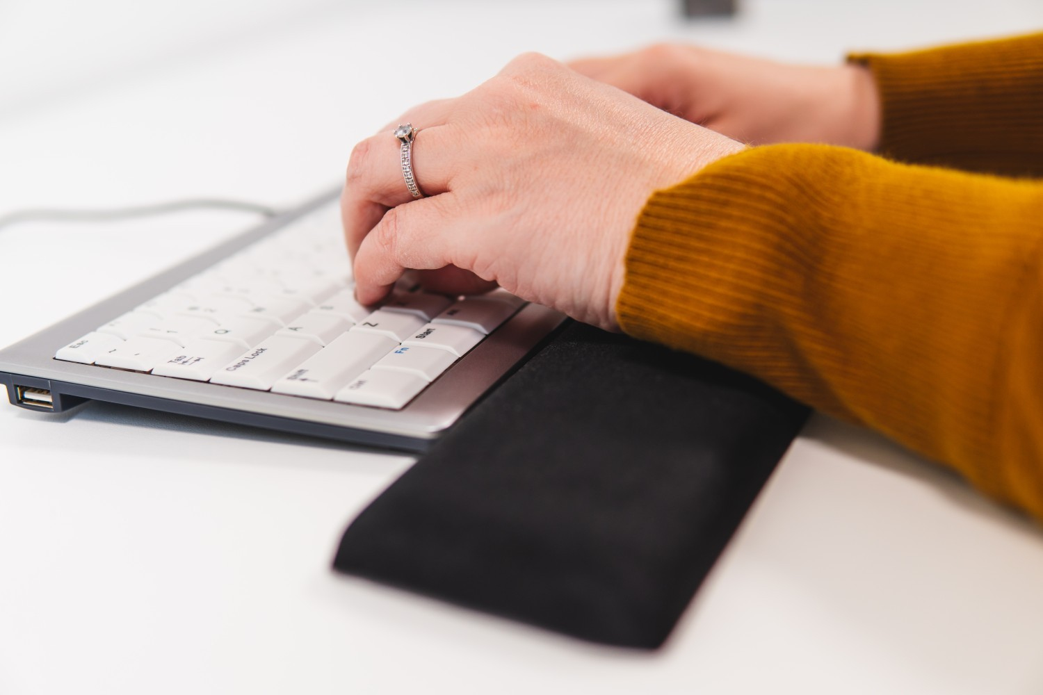 Passt sich Ihren Handgelenken an und bietet mehr Komfort.Die Trapezium Handgelenkstütze wurde entwickelt, um Ihre Handgelenke und Hände bei der Benutzung Ihrer Computertastatur zu unterstützen. Die Tastatur-Handgelenkstütze ist aus festem, dämpfendem Gel mit einer antibakteriellen Schicht hergestellt, die für optimale Hygiene sorgt. Die Trapezium-Handgelenkstütze ist eine gute Stütze für Ihre Handgelenke, wenn Sie stundenlang tippen und die Maus benutzen. Sie trägt zu einem gesünderen und komfortableren Arbeitsplatz bei.