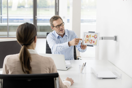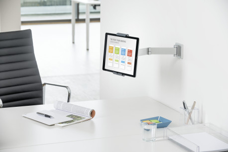 Der attraktive Tablet-Wandhalter mit Schwenkarm steht für zahlreiche multifunktionale Einsatzfelder wie Mehrfacharbeitsplätze und interaktive Infopoints und bietet ein hohes Maß an Flexibilität. Der bewegliche Tragarm bietet zahlreiche Einstellungsmöglichkeiten, um eine ideale Lesbarkeit der Tablets bei der Wandanbringung zu gewährleisten.