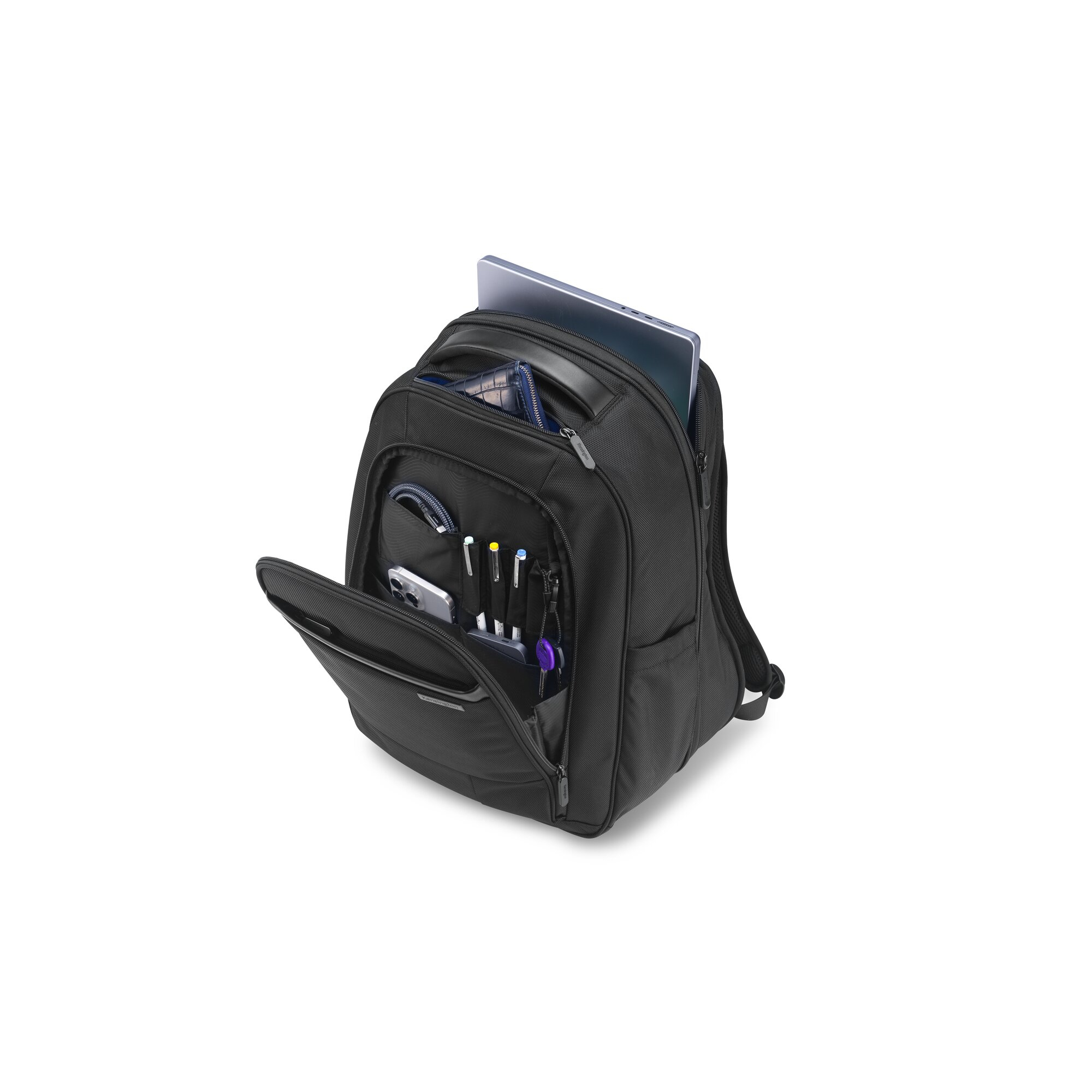 Der überarbeitete Contour 2.0 EQ Pro Laptop Rucksack 17 von Kensington bietet professionellen Komfort und Schutz für Ihre Geräte und Ihr Zubehör. Das komfortable ergonomische Design verfügt über eine wärmeableitende, konturierte Rückenpartie, die das Gewicht von den Schultern auf die Hüften verlagert und so für mehr Komfort sorgt. Das gepolsterte und abschließbare Laptopfach bietet Schutz vor Stürzen und verfügt über strapazierfähige, durchstichsichere Reißverschlüsse, um Ihre Geräte zu sichern. Der Rucksack ist aus strapazierfähigem, wasserabweisendem 1680D-Polyester gefertigt, das teilweise aus recycelten Materialien hergestellt wurde. Er hält nicht nur den Elementen stand, sondern nutzt auch recycelte Materialien. Mit einer versteckten RFID-blockierenden Tasche bleiben Ihre sensiblen Daten sicher und das TSA-freundliche Design mit Trolley-Gurt vereinfacht die Reise am Flughafen. Mehrere Zubehörtaschen sorgen für Ordnung bei den wichtigsten Utensilien, während gepolsterte Gurte und Griffe vielseitige Trageoptionen bieten. Inklusive 5 Jahren Garantie.Sicherheits- und Produktressourcen