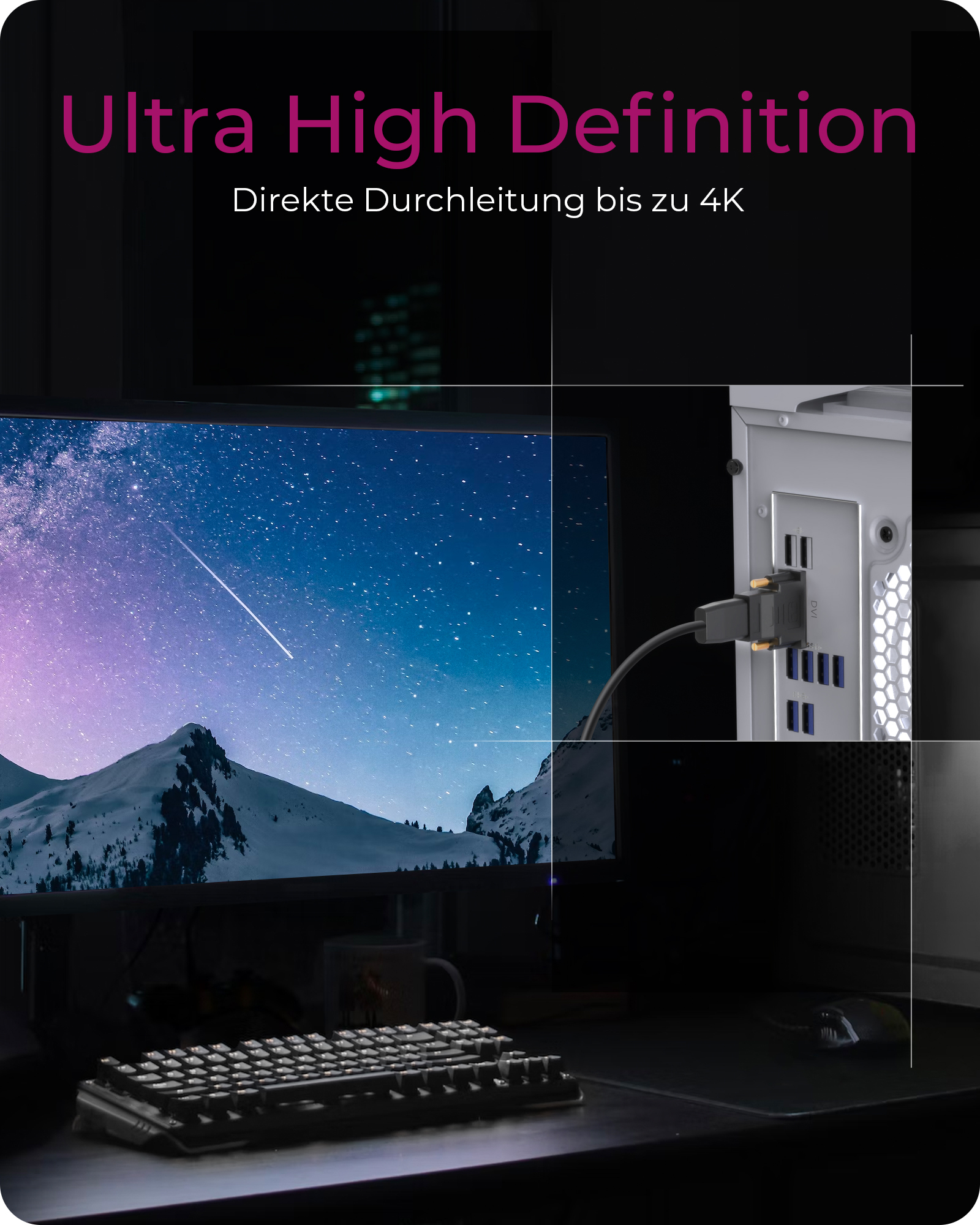 Die HDMI® Buchse des Adapters ist millimetergenau verarbeitet, damit ein eingestecktes HDMI® Kabel spielfrei passt. Zusätzlich sorgen die Schrauben am Adapter für den perfekten Halt an Ihrem DVI-Gerät auch bei langen, schweren Kabeln. Eine sichere Signalübertragung ist somit gewährleistet.