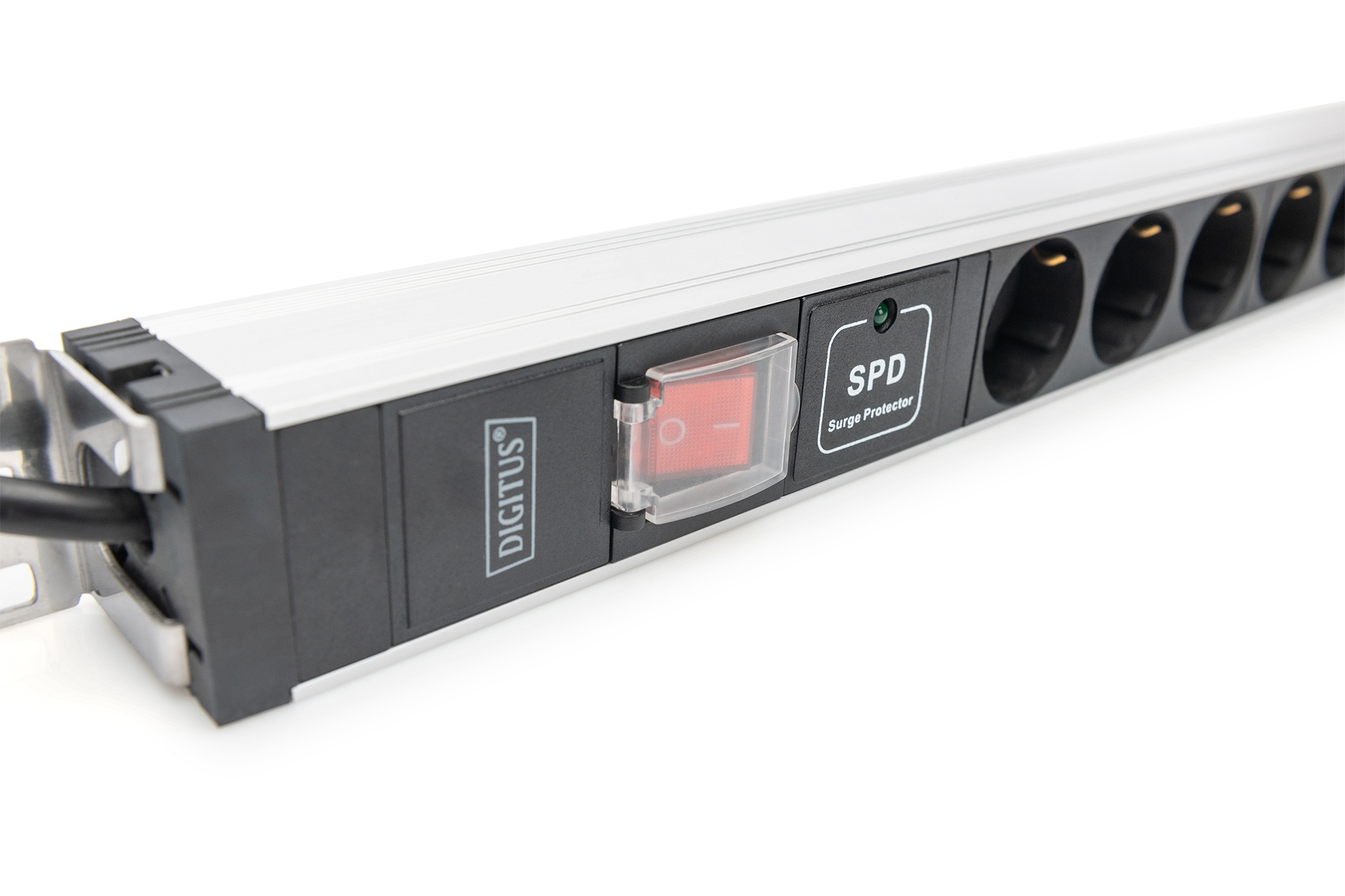 Die DIGITUS® Steckdosenleisten sind die perfekte Lösung für Ihren Netzwerk- oder Serverschrank. Hinsichtlich der Stromverteilung erfüllt die PDU Anforderungen vieler Anwendungen in der IT, Netzwerktechnik, Labore sowie auch den Heimbereich. Die Steckdosenleiste kann vertikal im Schrank montiert werden. Ein Überspannungsschutz schützt die Verbraucher vor Überspannung. Es besteht je nach Schranktyp die Möglichkeit, die Steckdosenleiste mit den Abgriffen nach rechts- oder links gerichtet zu befestigen.