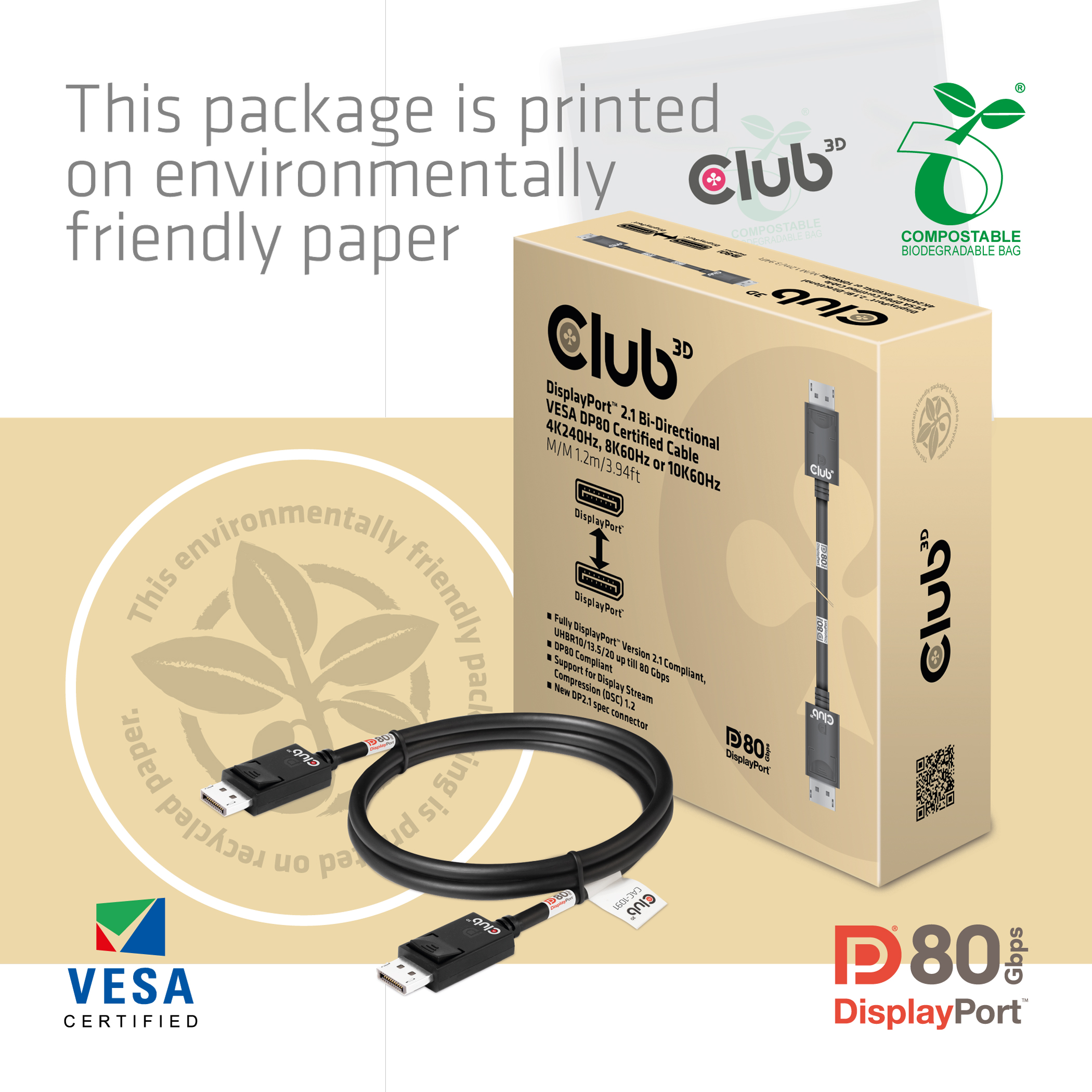 Club3D DP-Kabel 2.1 DP80 zertifiziert 1,2m 10K/8K/4K St/St ret