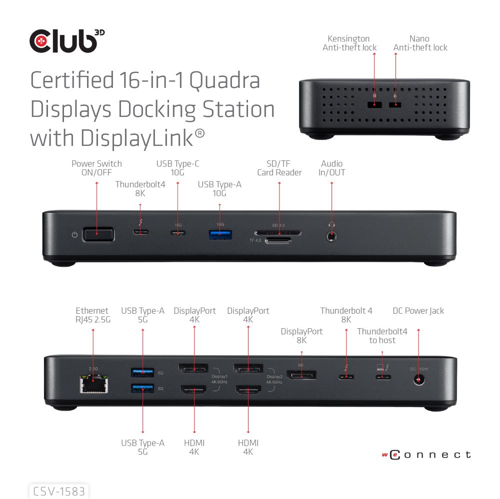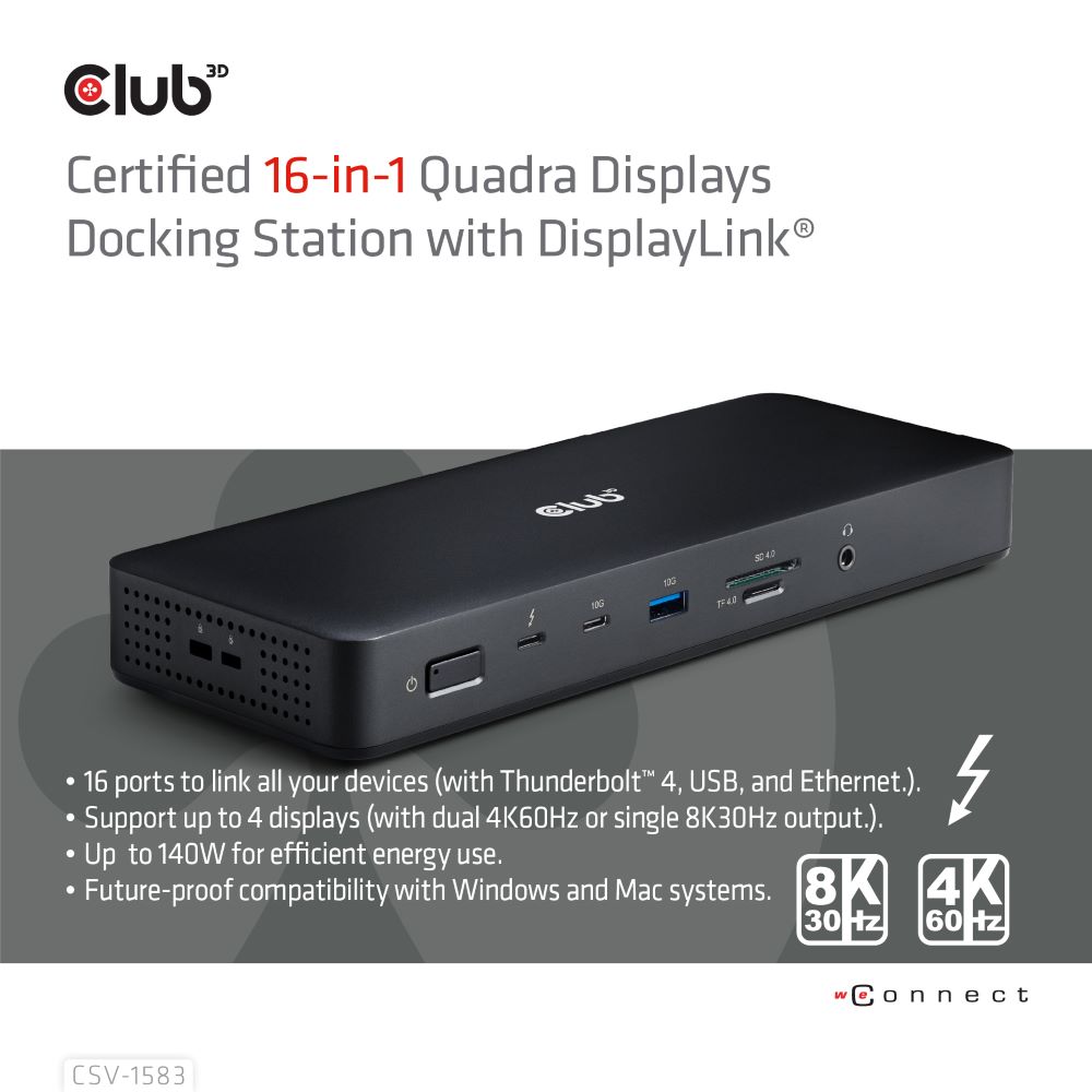 Club3D Thunderbolt4 16-in-1 Dockingstation 4 Displays St/­Bu ret