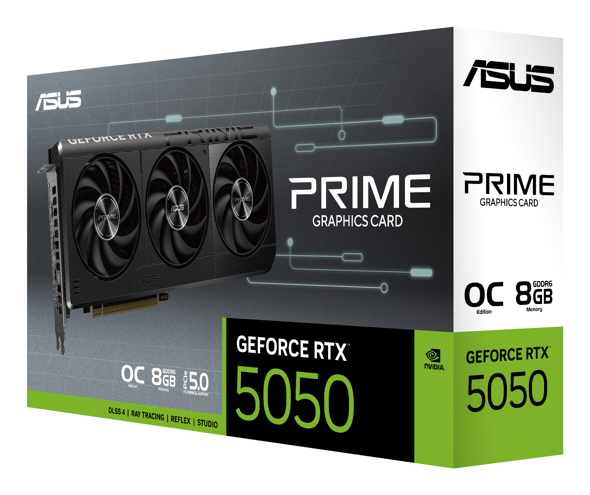Erlebe die ultimative Leistung der Prime GeForce RTX 5050, einer SFF-fähigen Enthusiast-GeForce-Karte mit einem 2,5-Slot-Design für umfassende Kompatibilität, die durch ein Dreifach-Lüfter-Setup für eine optimale Luftzirkulation und eine optimale Kühlung ergänzt wird.