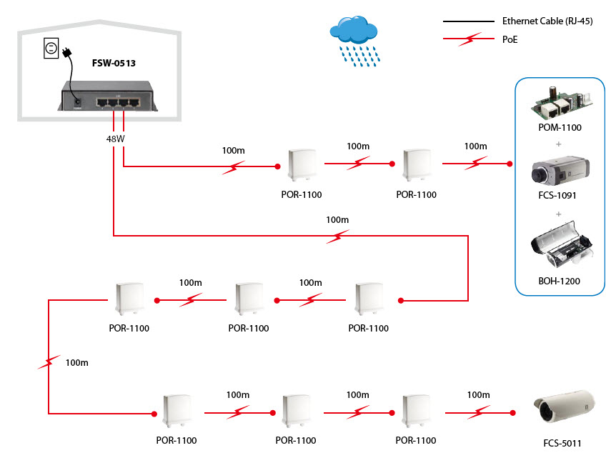 LevelOne´s FSW-0513 ist ein 10/100Mbps Fast Ethernet Switch mit 4 High-Power PoE-Ports und 1 Uplink-Port.Der FSW-0513 stellt insgesamt 120W für die PoE-Versorgung zur Verfügung, so dass der Switch die optimale Wahl für Netzwerkgeräte mit hohem Energiebedarf, wie Outdoor Kameras und Access Points, ist. Mit High-Power PoE kann die Reichweite der PoE-Versorgung um mehrere hundert Meter erweitert werden.